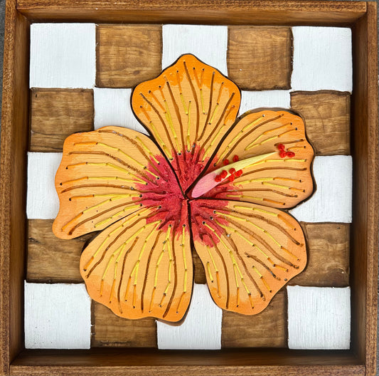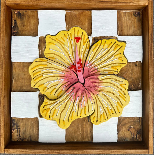 22.5cm x 22.5 cm Plywood, Acrylic and Embroidery on board Framed in Tasmanian Oak This...