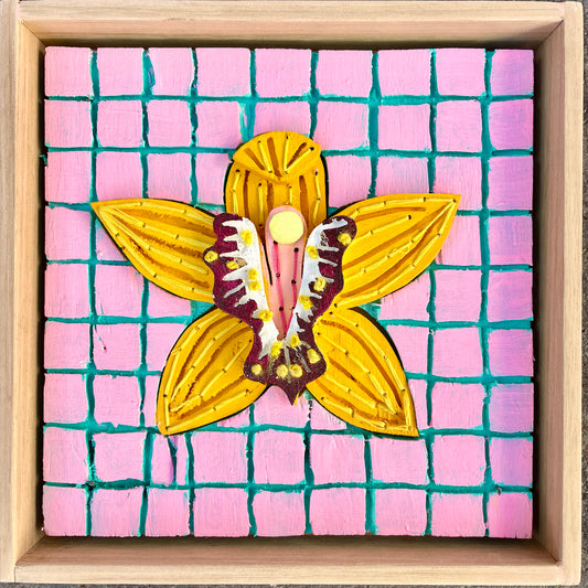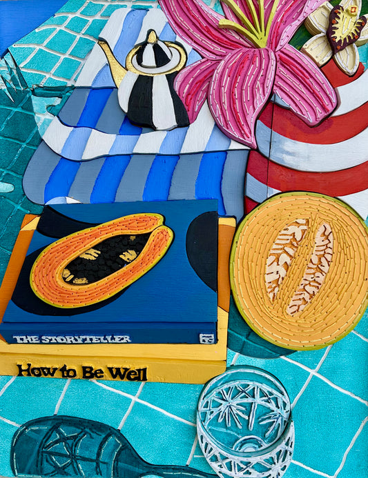 22.5 x 22.5 cm Plywood, Acrylic and Embroidery on board Framed in Tasmanian Oak This...