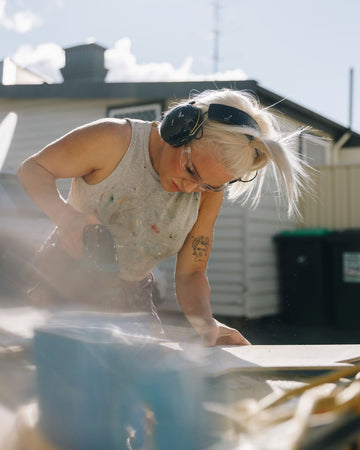 Reminiscent of a jigsaw puzzle, every different piece the artworks has been drawn onto the wood, cut, painted and finished to fit into its place. The ‘puzzle’ resonates Harrisons process- chaotic but methodical, disordered but intentional. Piece by handcrafted piece the artwork reveals itself through her process. The process of Harrison’s art is just as important as the finished result. Harrison’s art making defies the constraints of painting and sculpture, masculine and feminine.