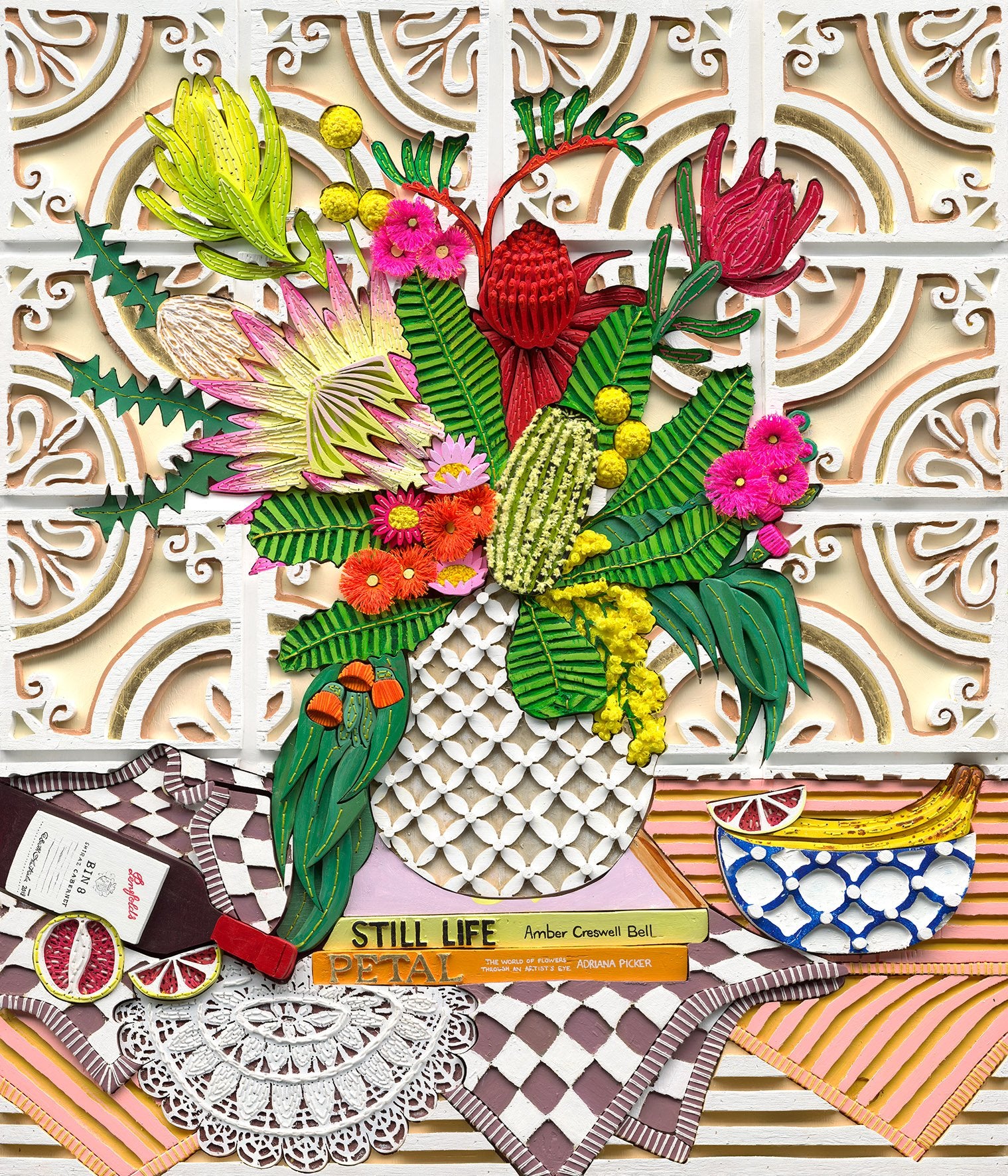 A Land of Sweeping Plains limited edition print is a scanned reproduction of an original, three-dimensional artwork made from wood, acrylic paint and embroidery. Using cutting edge technology this archival print is the next best thing from an original woodcut artwork. Using only the highest quality materials, this print has so much detail- you can even see the fibers in the wool.